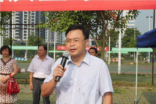公司黃鼎龍董事長(zhǎng)宣布籃球賽開幕