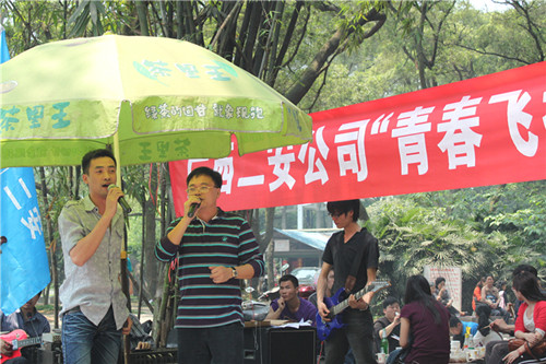 2011年4月23日,集團二安公司團委組織全公司各基層團支部在柳州市雀山公園舉行了主題為“青春飛揚” 露天音樂會團日活動,迎接第92個“五四青年節(jié)”的到來。公司董事長、總經(jīng)理、黨委副書記黃鼎龍;公司黨委書記、紀委書記、工會主席藍錦??;公司副總經(jīng)理覃幼轍;公司副總經(jīng)理、第三分公司經(jīng)理莫雄清參加了此次活動。并為榮獲集團公司一屆二次職代會文藝晚會一等獎的演員及榮獲公司2010年度“十佳青年崗位能手”頒發(fā)榮譽證書及獎金?;顒蛹碚?、素質(zhì)拓展訓練、氣排球比賽,文藝表演等于一體,形式新穎,精彩紛呈。團員青年們積極參與,各自表演自己的特長,唱歌、跳舞等節(jié)目層出不窮,活動現(xiàn)場氣氛熱烈,高潮迭起,展現(xiàn)出了二安青年員工朝氣蓬勃、積極向上的精神面貌,吸引了不少圍觀者的眼球。此次活動的開展,增進了團員青年們的溝通交流,企業(yè)凝聚力進一步增強,更好地促進廣大團員青年員工立足崗位,扎實工作,不斷創(chuàng)新,充分發(fā)揮團員青年生力軍作用,在公司建功立業(yè)過程中體現(xiàn)青年人的人生價值,為公司健康快速發(fā)展奉獻青春力量!